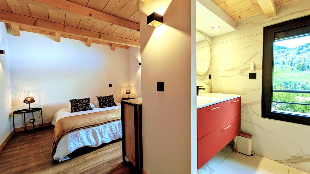 Manigod - Chalet for sale fully renovated in 2023, with a floor area of 80.03 m² loi carrez + 19.55 m² of additional floor space, ideally located in the heart of the village, with good sunshine and mountain views.