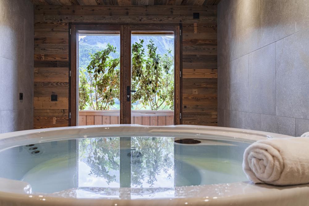 Garden level: a ski room / bike room / cellar, a 51 m2 garage, a spa with jacuzzi-sauna-shower.
