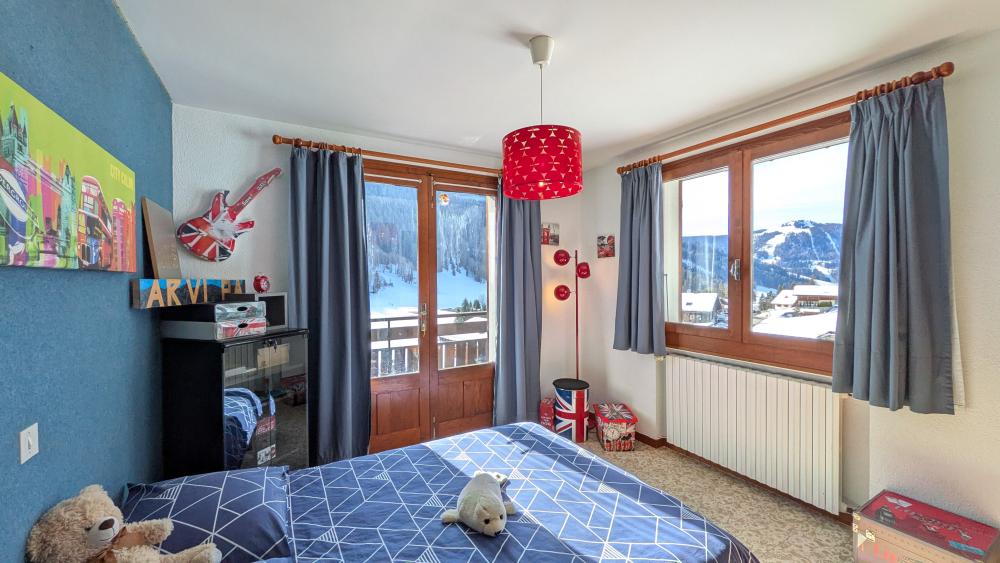 Ski-in/ski-out access, shuttle stops nearby, excellent sun exposure, and beautiful panoramic views of the Aravis mountain range at Beauregard.