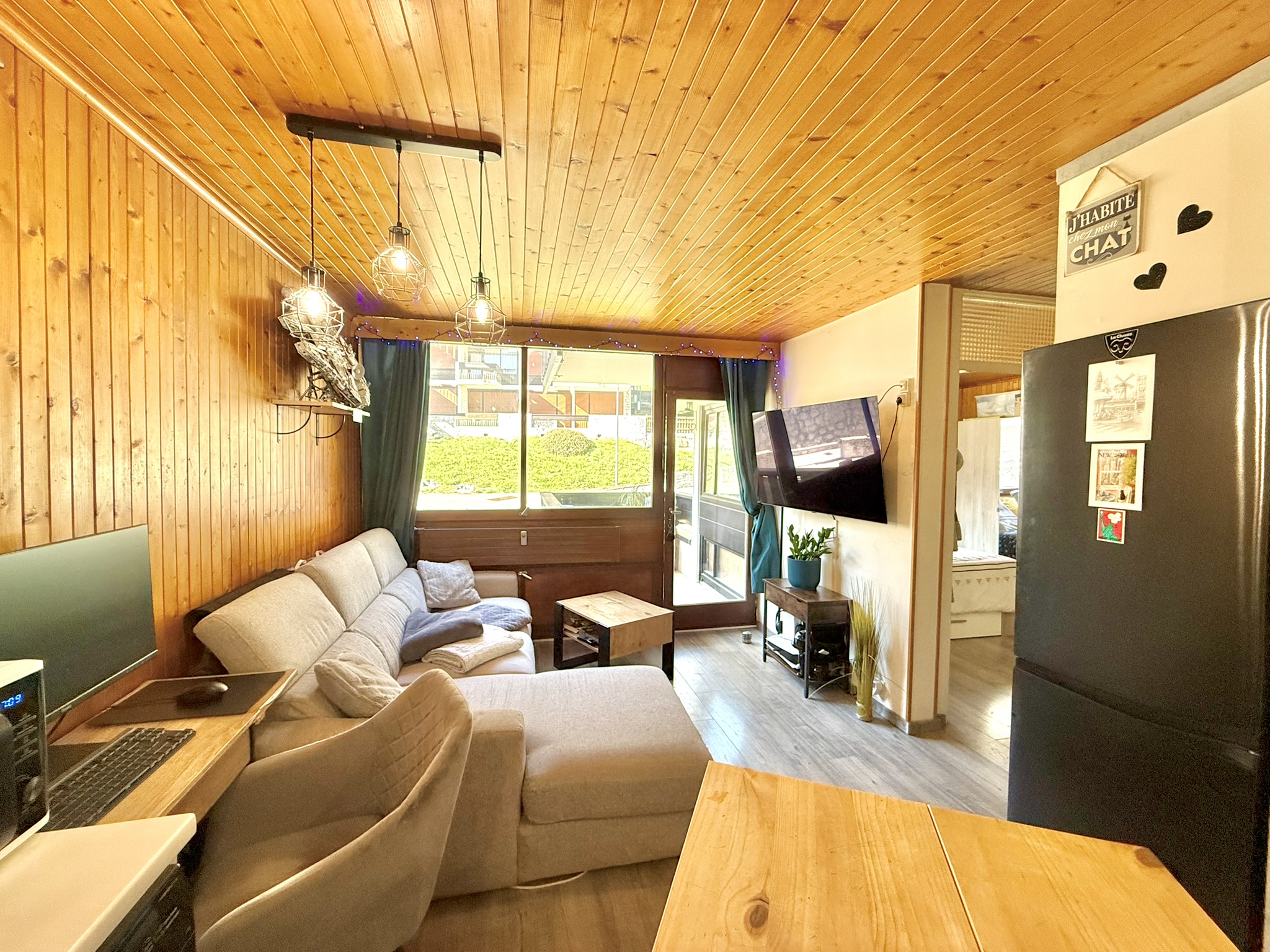 La Clusaz Centre village - Quartier de la Perrière - Appartement T2 de 30.25 m² + balcon + cave + casier à skis. au cœur du village, à proximité immédiate des commerces, des pistes de ski et télésièges et de l'Espace Aquatique. Résidence de 28 appartements (1967).